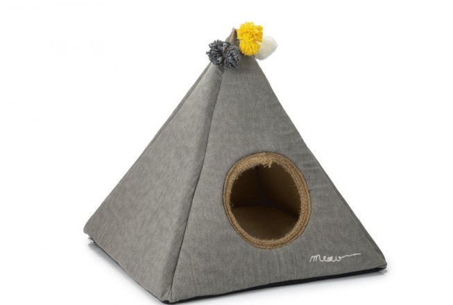Палатка для кошек Designed by Lotte "Piramido". Внутри палатки - удобное спальное место для кота с мягкой подушкой. Её можно стирать в машинке. К палатке прикреплены три цветные шарика.