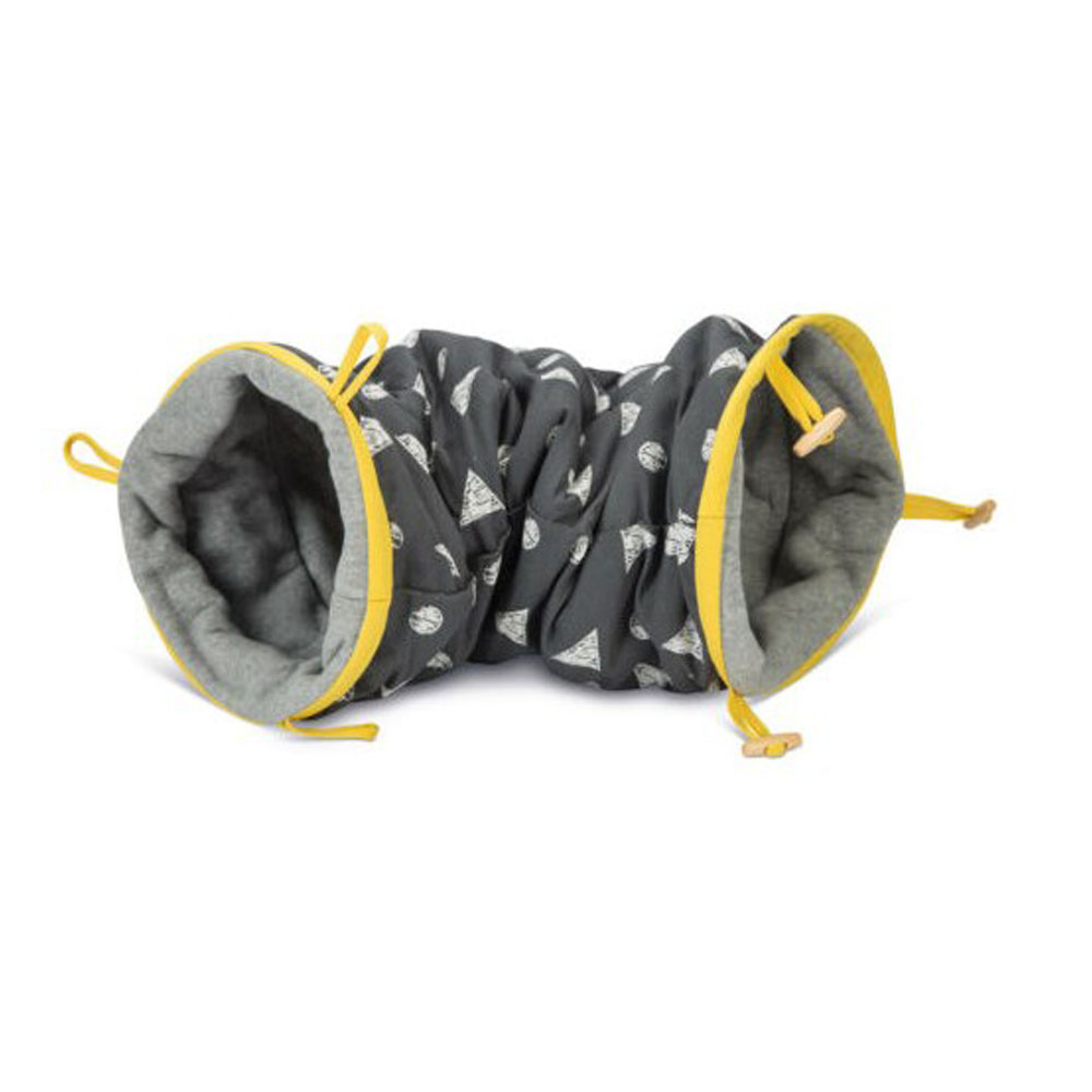 Beeztees Doju Play Tunnel - это жемчужина среди кошачьих туннелей. Этот туннель не только интересен для вашей кошки, но и отлично смотрится в доме. Игривый принт и желтая полоса придают этому игровому туннелю веселый вид. Вы можете проложить туннель по длине или связать концы вместе. Если вы свяжете концы, получится сделать игру еще более увлекательной для вашей кошки. Внутренняя сторона отделана тканью, благодаря чему туннель становится особенно мягким. Если ваша кошка закончила играть, вы складываете туннель и просто убираете его.
