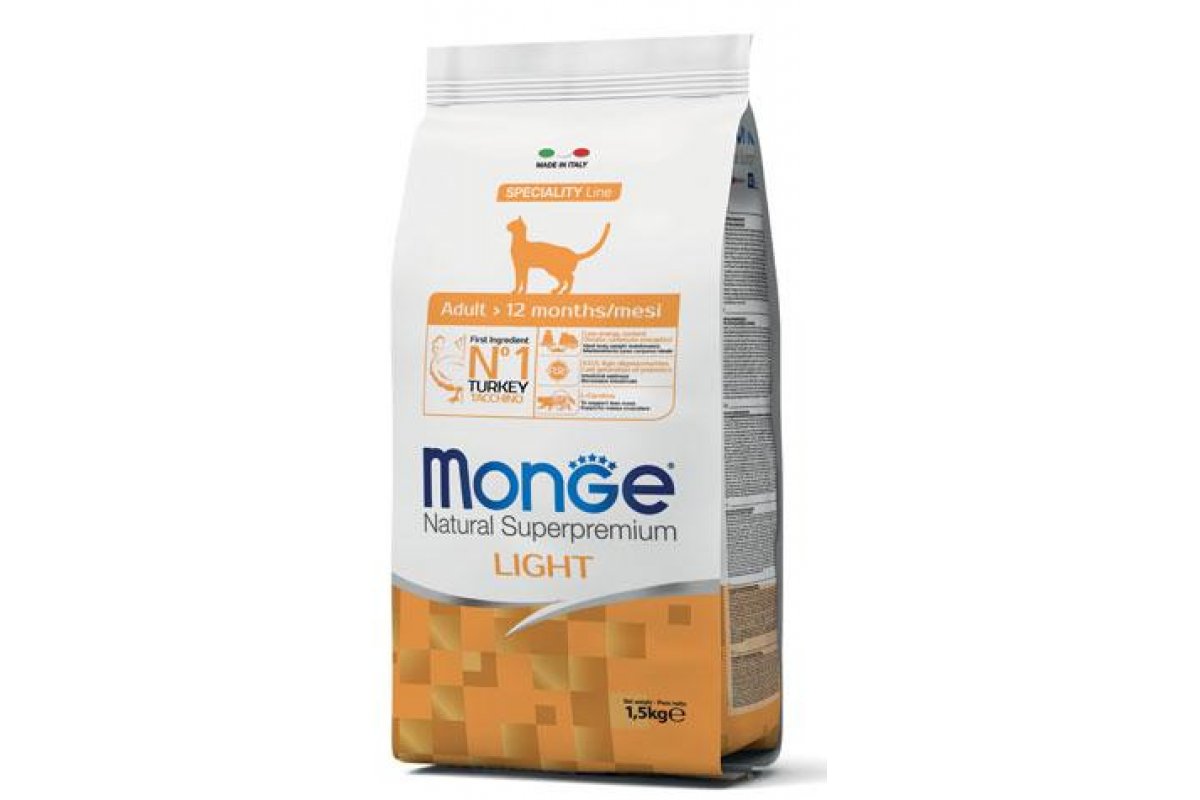 Корм Monge Cat Light TACCHINO для кошек низкокаллорийный с индейкой, 1,5кг