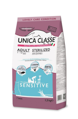 Unica Classe Adult Sterilized Sensitive (Тунец) - полноценный корм для взрослых стерилизованных кошек в возрасте от 1 до 12 лет с тунцом.