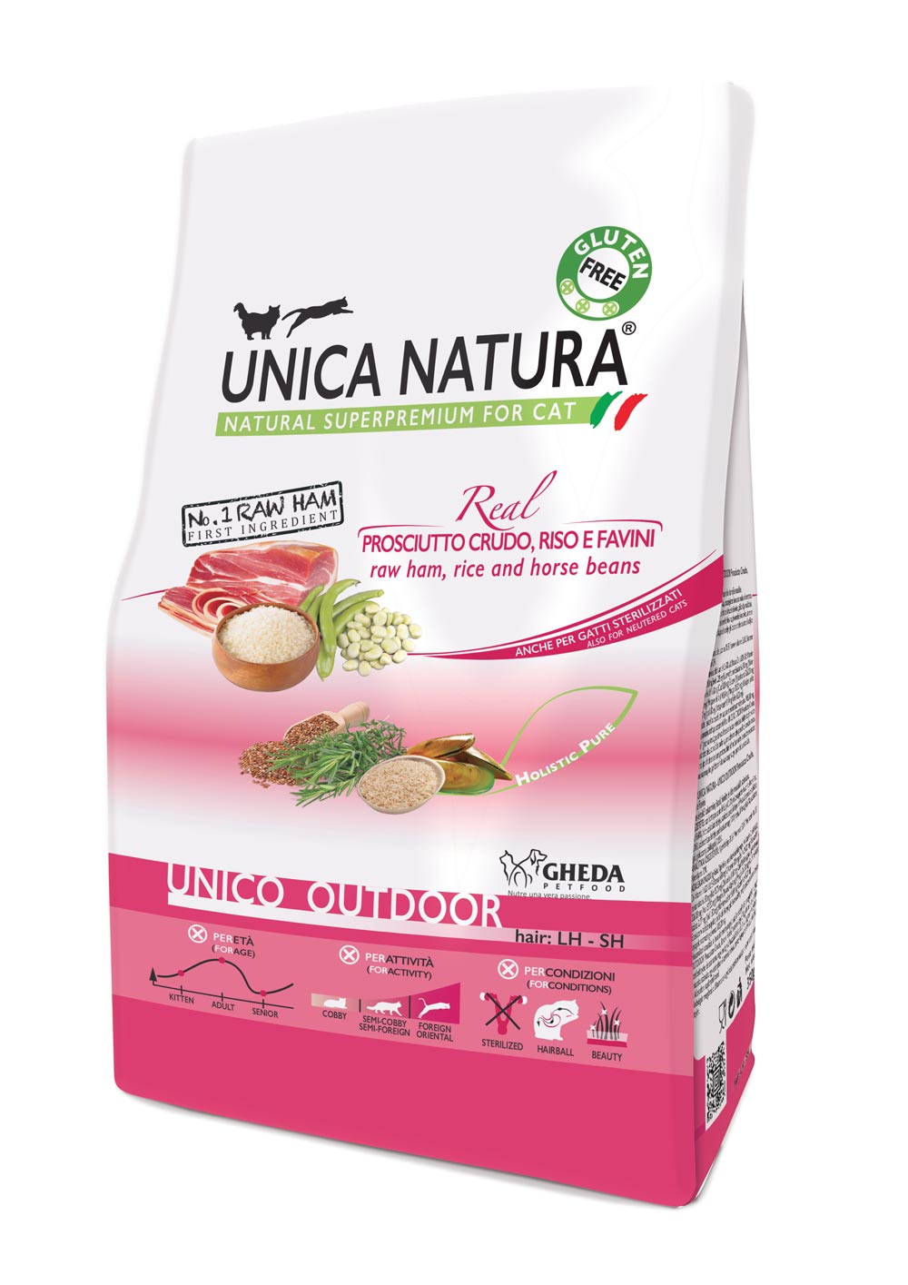 Корм Unica Natura Outdoor для кошек,ветчина,рис,бобы,1,5кг