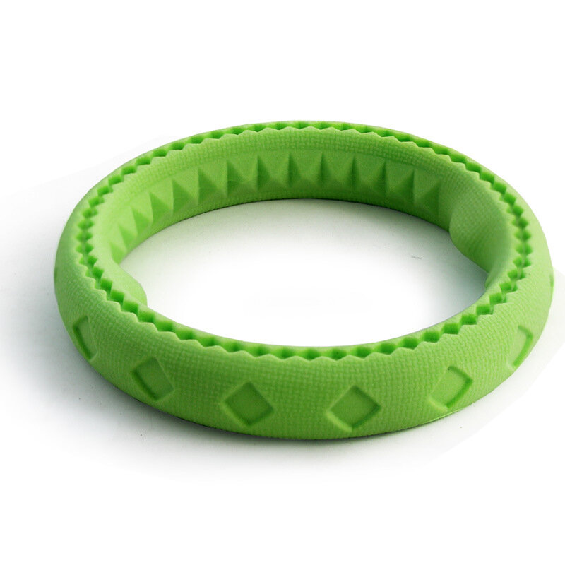 Оригинальная игрушка в форме кольца выполнена из термопластичной резины и подходит для собак крупных пород. Прочная и в то же время обладающая мягкой структурой. Изделие послужит хорошим "напарником" для игры и позаботится о здоровье зубов животного. Тонкий аромат яблока дополнительно привлечет внимание питомца и позволит сделать игру или тренировку еще интереснее.