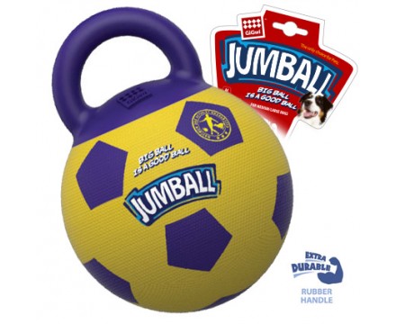 Игрушка "GiGwi" для собак "Мяч с захватом" с ручкой "Джамбол", жёлтый/фиолетовый, резиновый, 26 см