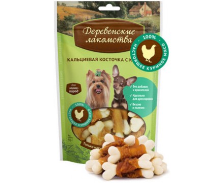Кальциевая косточка с курицей "Деревенские лакомства", для собак мини-пород, 55 гр.