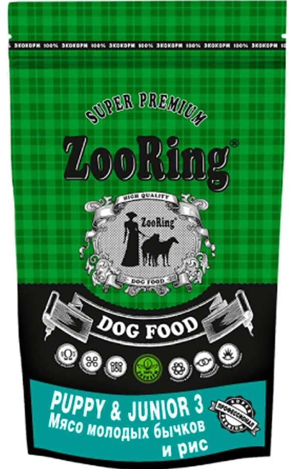 ZooRing Junior 3 (Мясо молодых бычков, рис), Сухой корм для собак юниоров средних и крупных пород